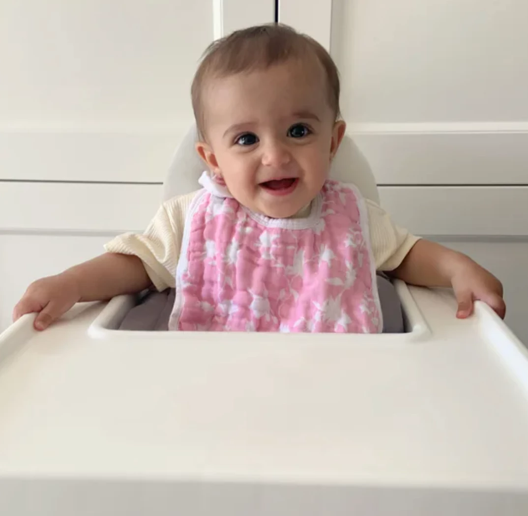 Our cotton muslin snap baby bibs offer an adjustable fit that grows with baby thanks to three snaps conveniently located in the front for easy fastening. Made with three layers, the absorbent bib soaks up spills, drools, and baby burps.