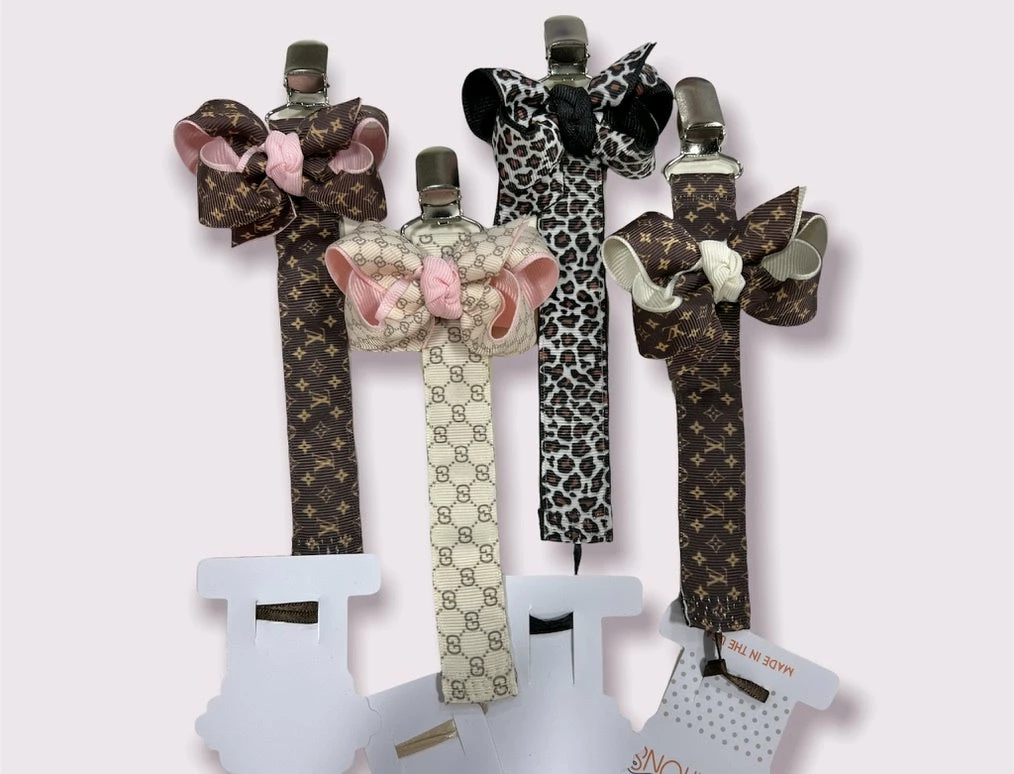 7/8″ Double Sided w/Ribbon Loop Paci Clip with Detachable Bow.