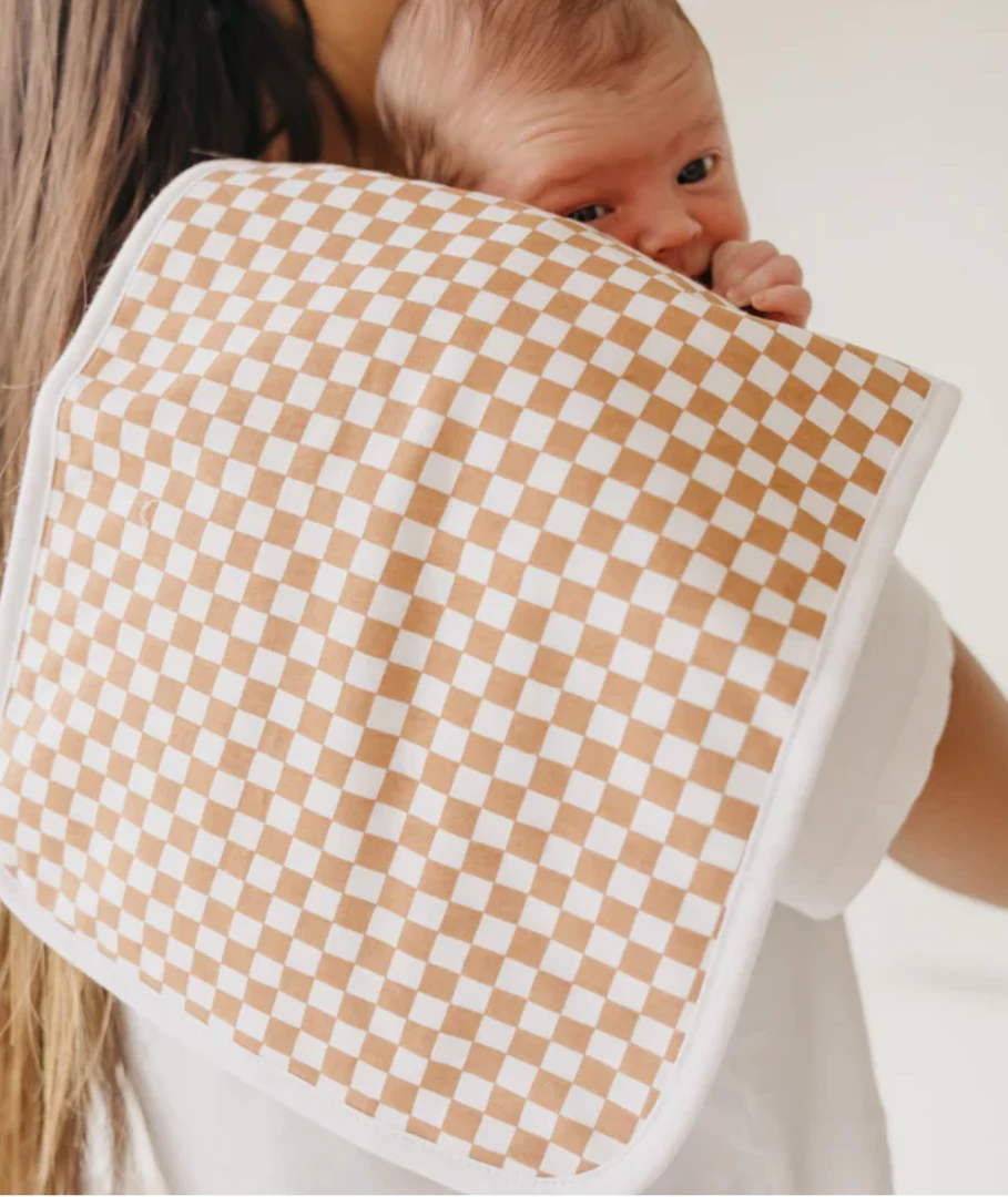 Our burp cloths are designed with babyβs comfort in mind.Β Thatβs why we created them with 100% ultra-soft cotton layers on the front (patterned) and back (plain white).Β You can feel confident that baby will feel cozy against your shoulder while burping.Β Β