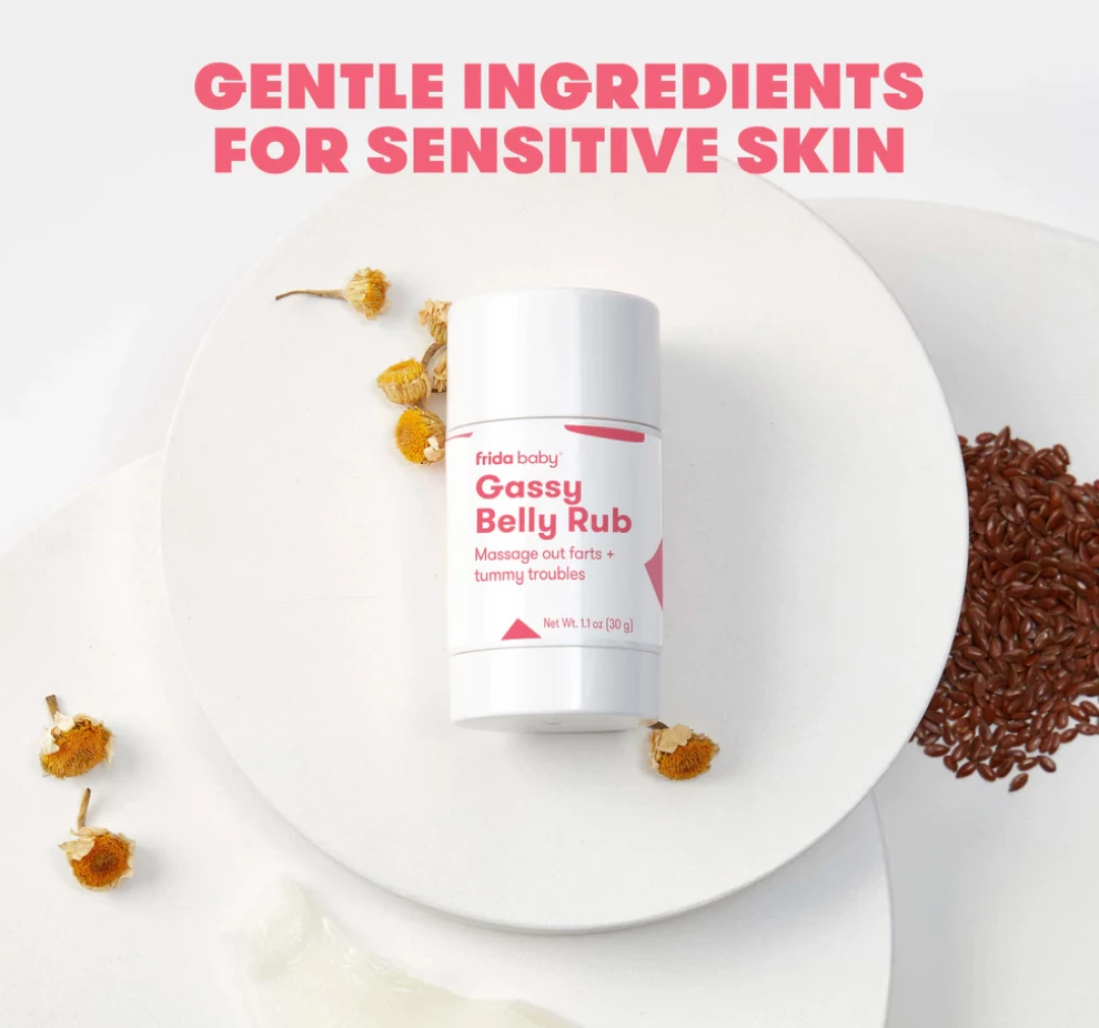 When baby’s fussy from trapped gas in their tummy, try a belly massage with Gassy Belly Rub to get things moving in there. Made with gentle, newborn-safe ingredients, Gassy Belly Rub can be used for a soothing nightly ritual to help calm your little one into sleep time. Just rub on, massage in, and get the gas flowin’.