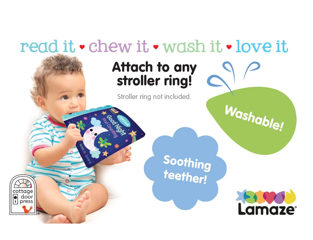 Wish the night sky and the creatures below good night! One moon, two bears, three turtles, and so on. Count along with sleepy forest friends in this durable (and chewable) teether book. Enjoy relaxing, sleepy-time illustrations on every page! These washable, safety-sewn pages are safe for toddlers to chew on and feel just like paper. When you reach the end of the story, you can hand wash it for the next night’s bedtime.