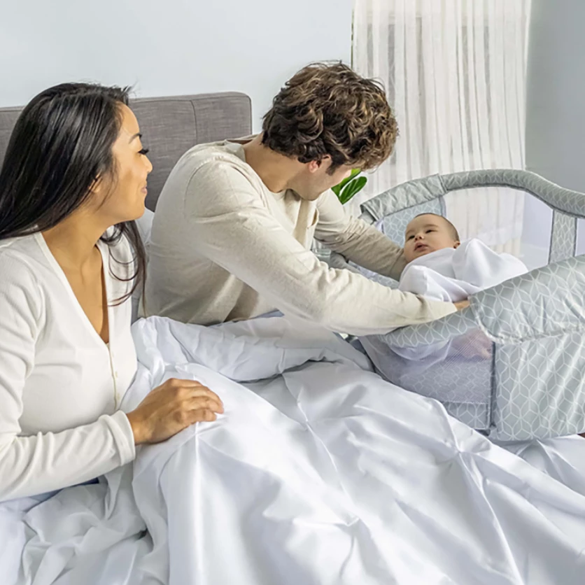 The only bassinet with a full 360° swivel to safely bring baby closest to you in bed