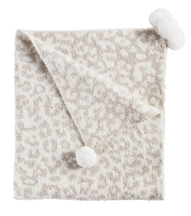 Mudpie Leopard Blanket w/Poms in Ivory.