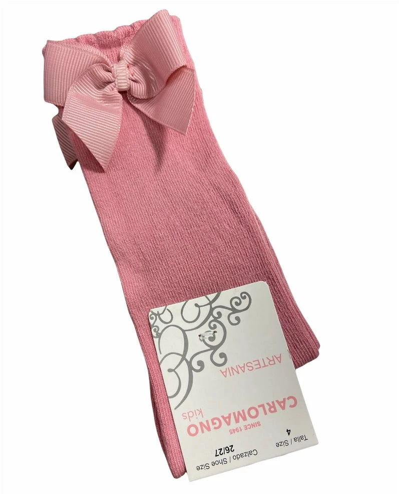 Knee Socks with Silk Bow in Pale Pink for Toddlers & Kids.Β