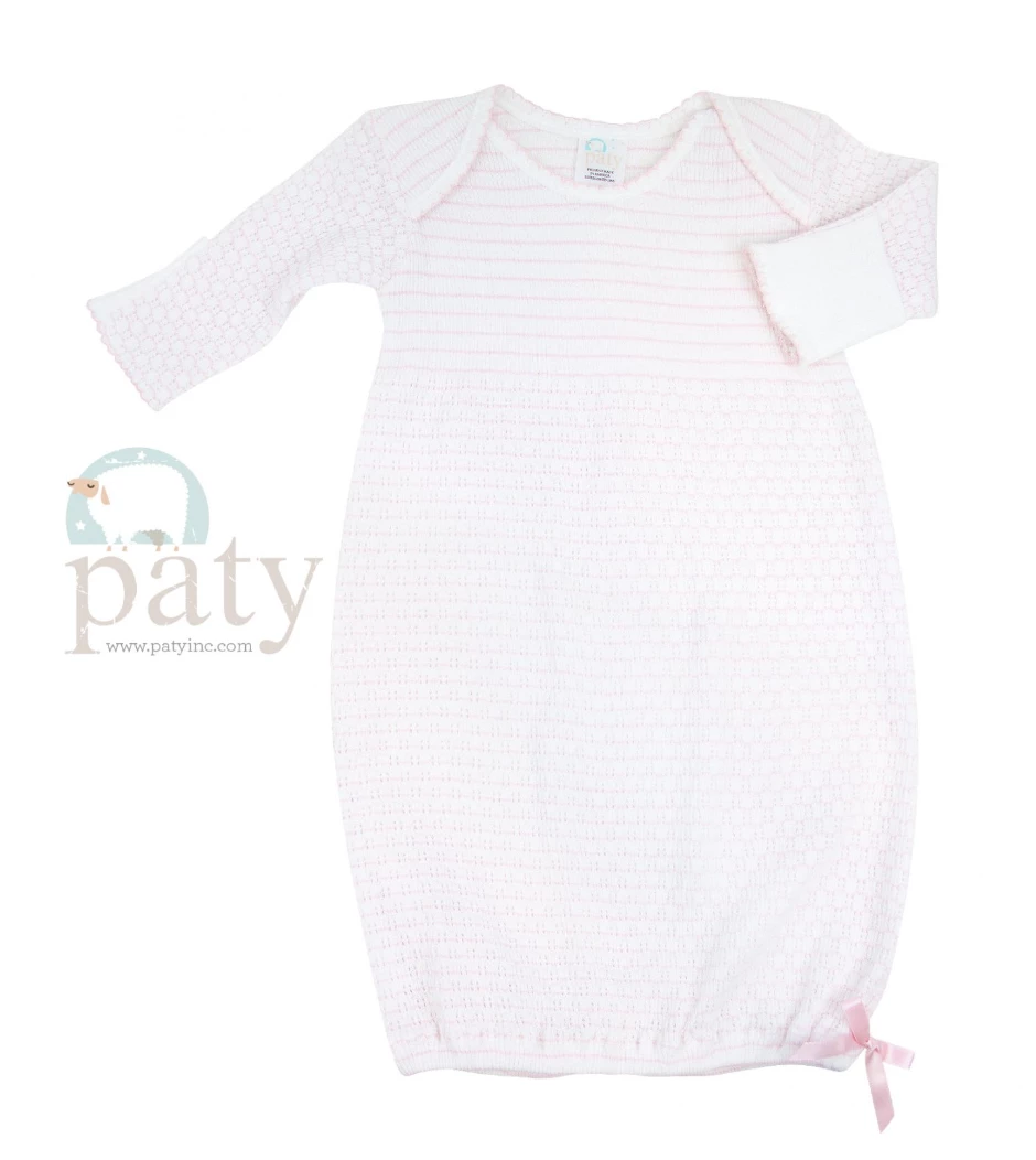 Paty Lap Shoulder Pinstripe Gown in Pink.