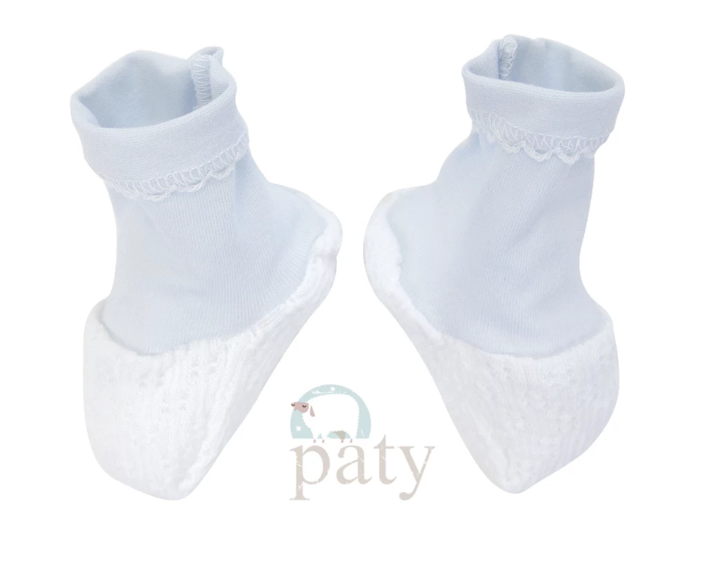 Wholesale ๐ Baby Registry Paty White W/Blue Jersey Trim Booties โญ