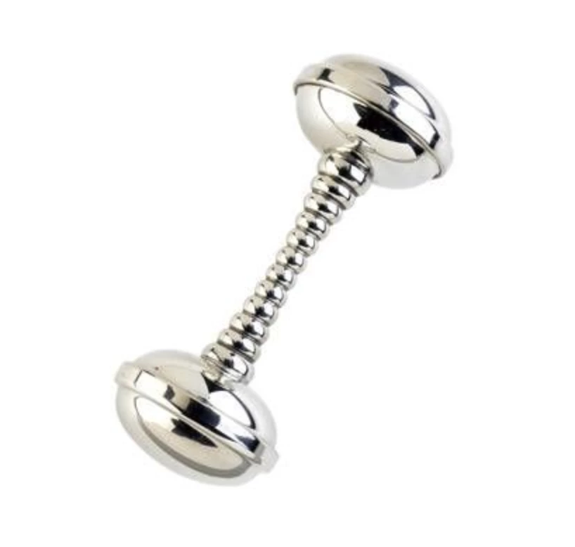 Designed to resemble the most beloved baby toy ever, this polished pewter Stacking Ring Rattle is easy to grip and will surely be a gift to treasure through the years. The Rattle ends are suitable for engraving baby’s initials, name (up to nine characters) or birth date.