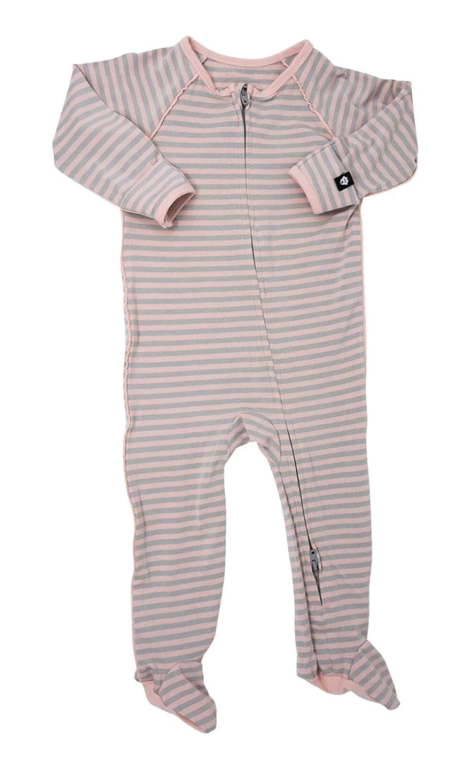 Coupon ๐ Baby Registry Pink/Grey Stripe Piped Zipper Footie ๐ฏ