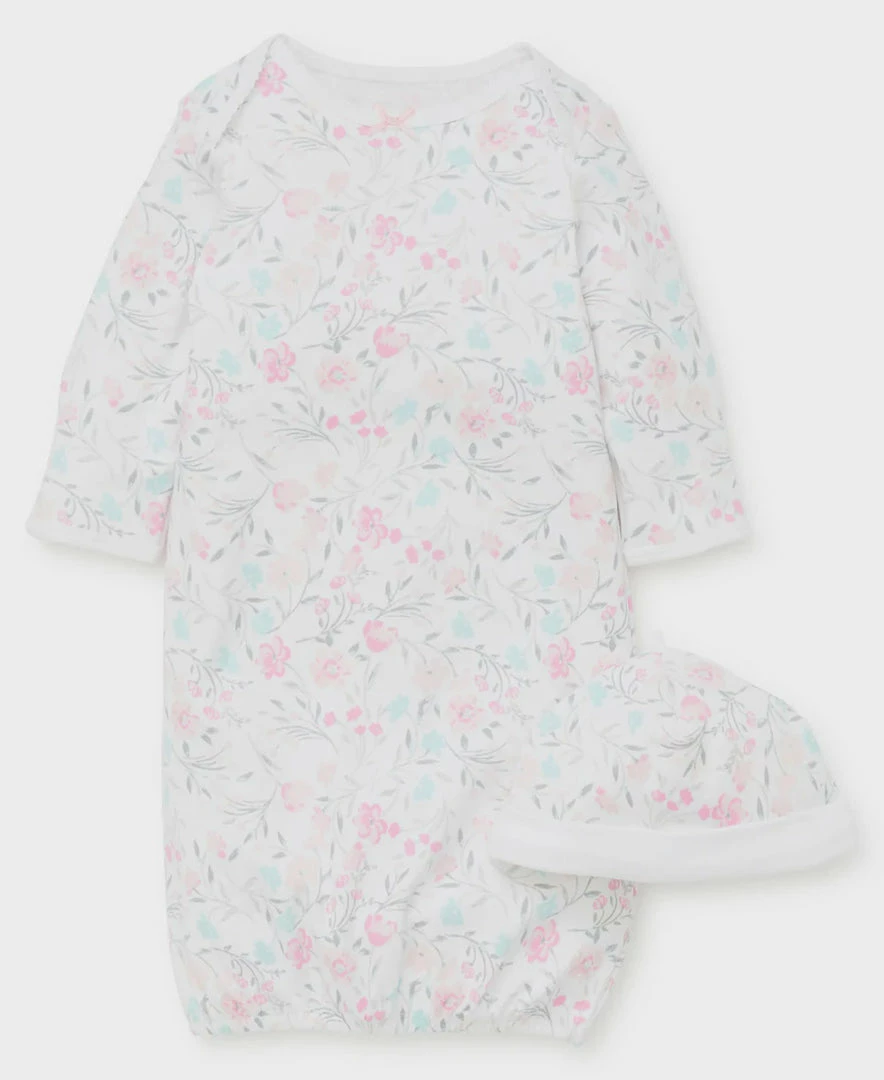 Watercolor sleeper gown & hat.