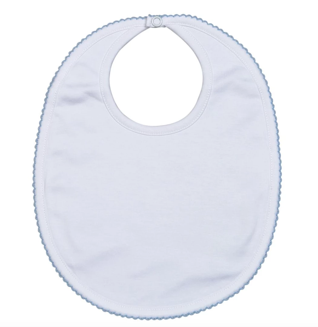 White Pima Bib with Blue Trim.