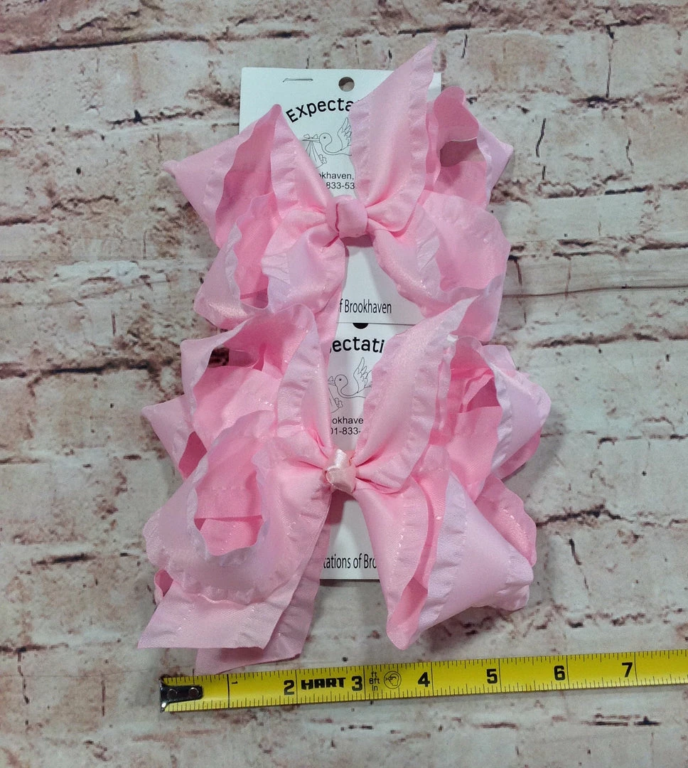 PINK SATIN TYPE HAIRBOW WITH RUFFLED EDGES