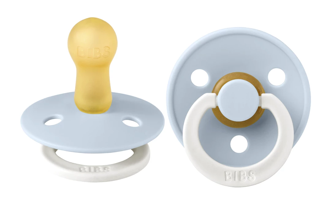 Latex 2pk Baby Blue Glow Bibs Paci.ย