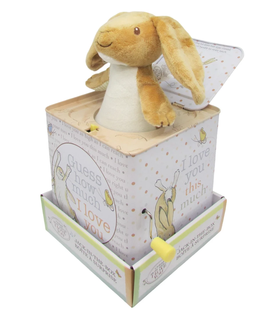 Hear Pop Goes the Weasel and wait for the surprise as Guess How Much I Love You™ Jack-in-the-Box Little Nutbrown Hare pops up to say hello. The box features graphics from the Guess How Much I Love You™ book and measures 5.5 inches tall. The Guess How Much I Love You™ Jack-in-the-Box can be displayed on the nursery shelf when baby is sleeping.