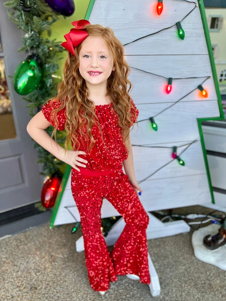Cheap 🌟 Bratty Maddy Red Sequin Bell Bottom Pant 50% Off Fall Clothing ❤️