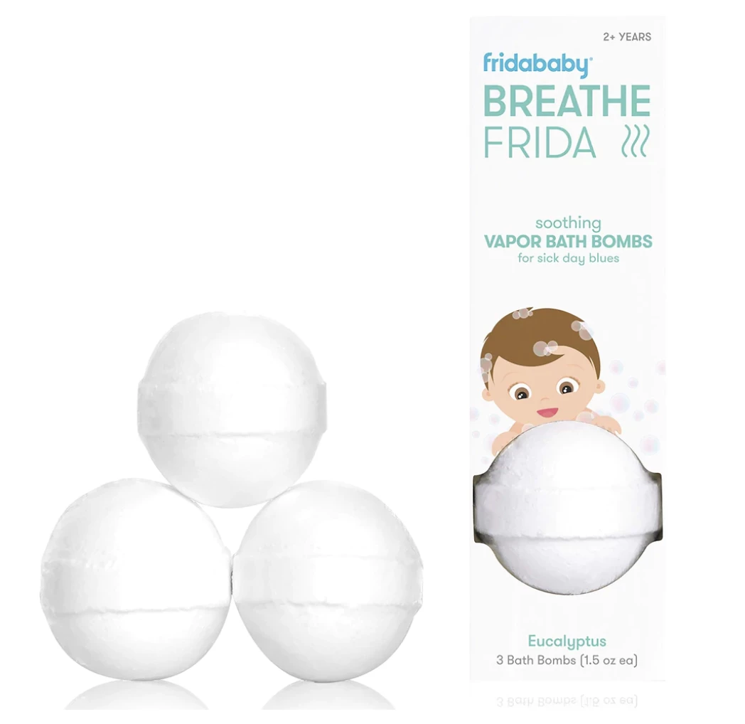 When your kiddo’s airways are more congested than the airport on Thanksgiving, throw a BreatheFrida Vapor Bath Bomb in the tub and breathe in soothing aromas! With eucalyptus and lavender oils, our Vapor Bath Bombs will help get you through cold & flu season. And hey, they work for adults, too!