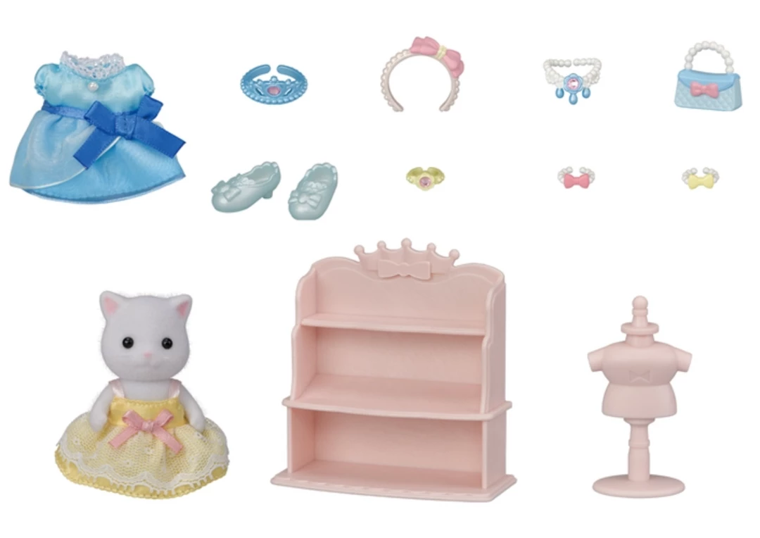γ»Mix and match dresses, tiara, accessories, and shoes, to give your Calico Critters a princess makeover!