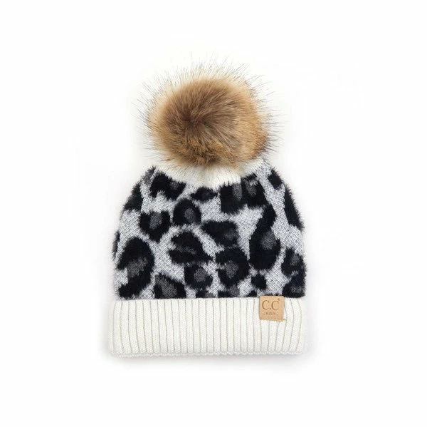 New ✨ CC Beanie Kids CC Ivory Leopard Fur Pom Beanie ⭐