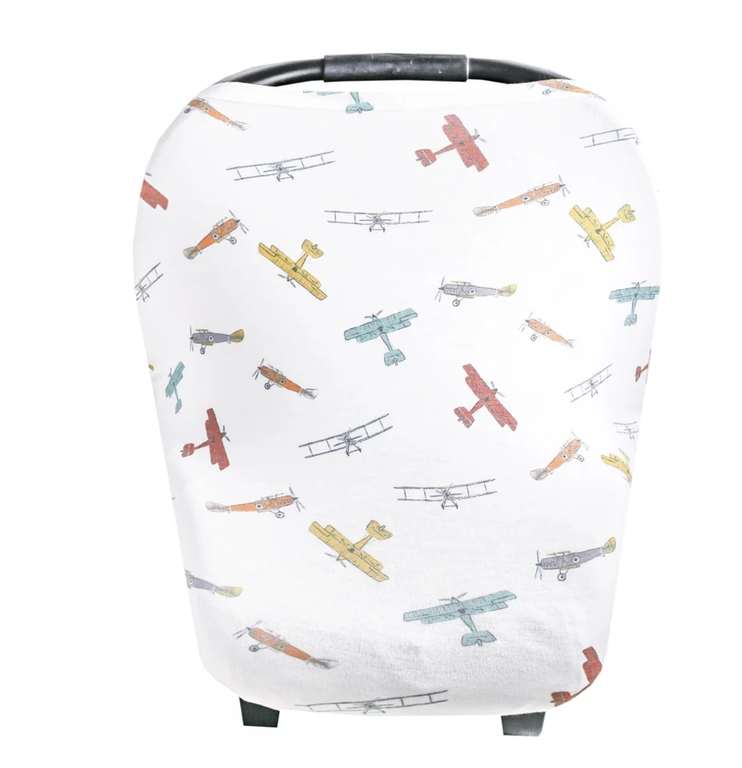 Stretchy fabric fits most all car seats, shopping carts, high chairs and nursing mothers. It can also be a trendy infinity scarf!