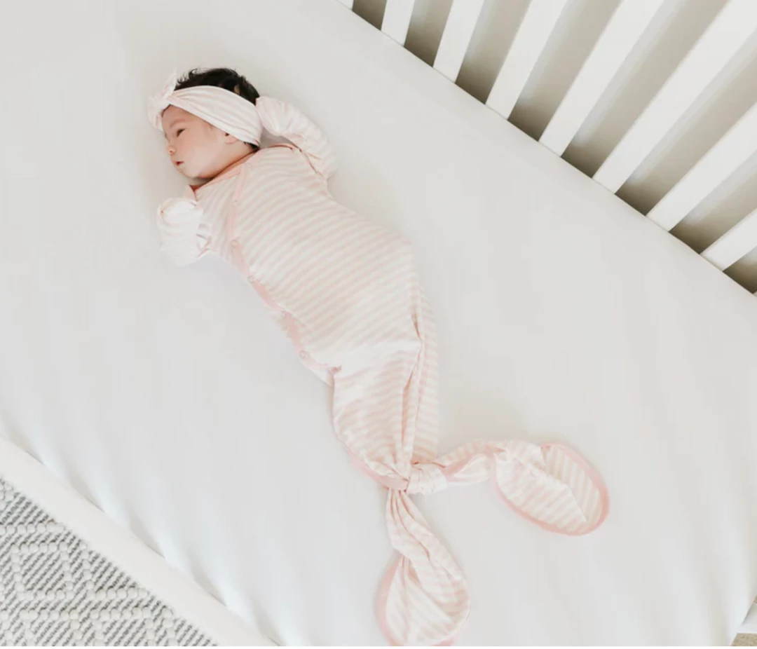 PREMIUM POLYESTER/RAYON BLEND β Made with the same premium knit fabric as our beloved swaddles, this soft and stretchy gown ties at the bottom for easy diaper changesβand has room to grow.
