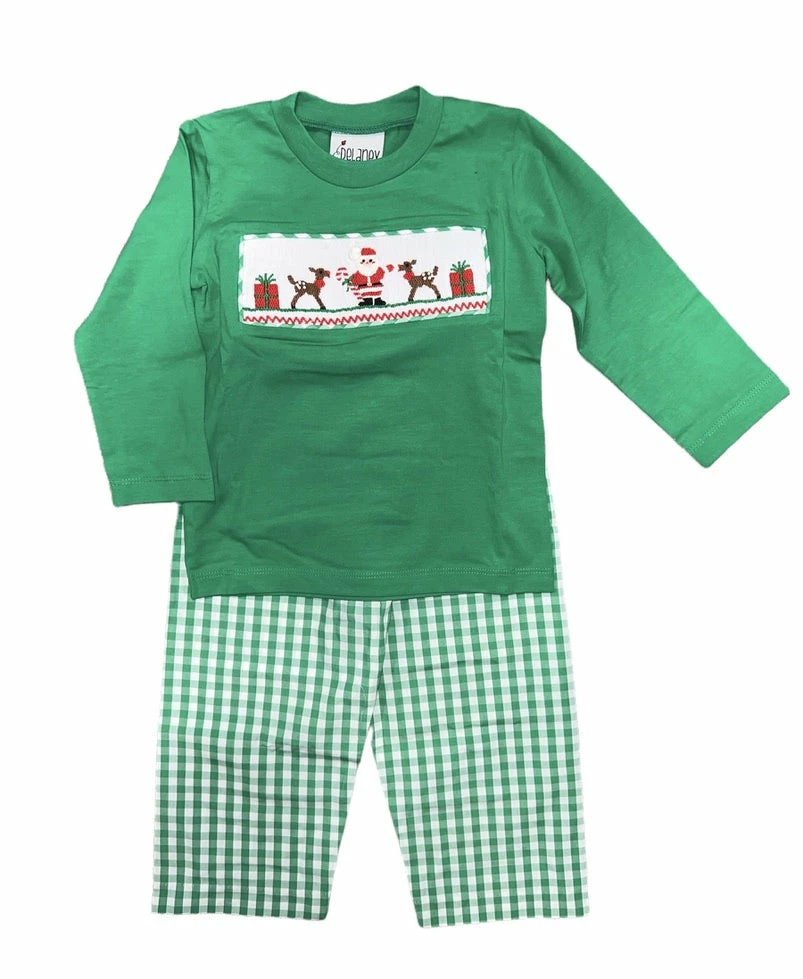 Delaney Long Sleeve Smocked Reindeer & Santa Boys Pant Set.