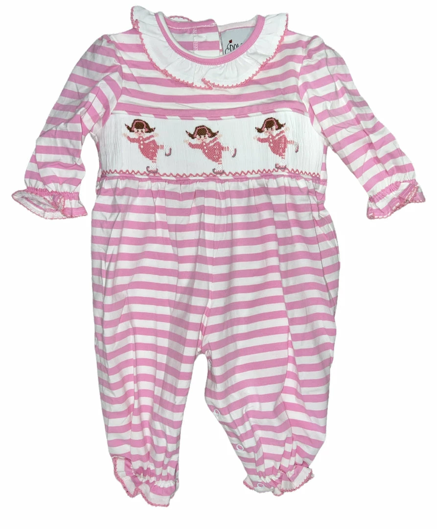 Delaney Girls Pink Stripe Smocked Ice Skater Romper.