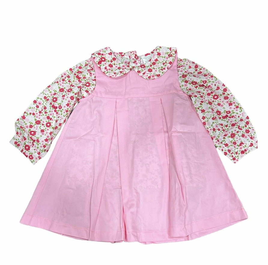 Girls Pink & Red Cord Button Front Jumper/Pink Floral Blouse Set.