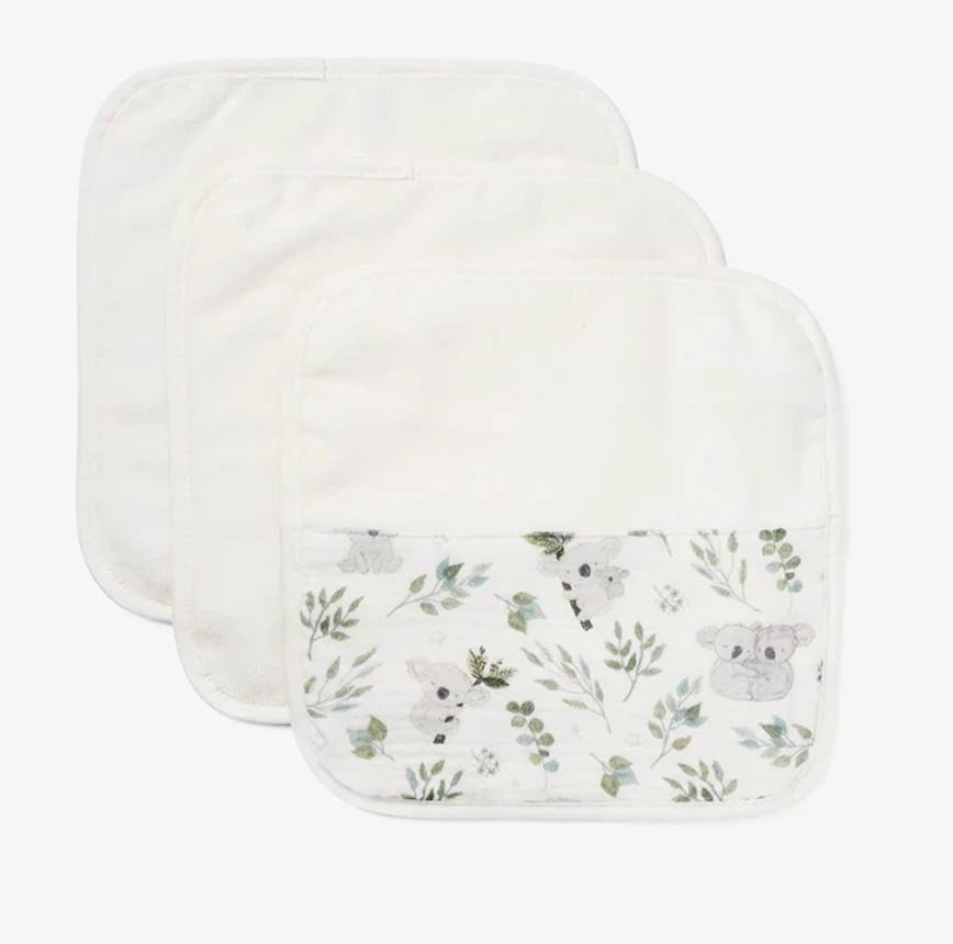 hese super soft & absorbent, organic baby washcloths will keep your little one happy and comfortable at bath time. Each organic baby washcloth is made of soft organic cotton that will clean dirt and grime without irritating delicate skin. Your baby will leave every bath feeling clean and refreshed.