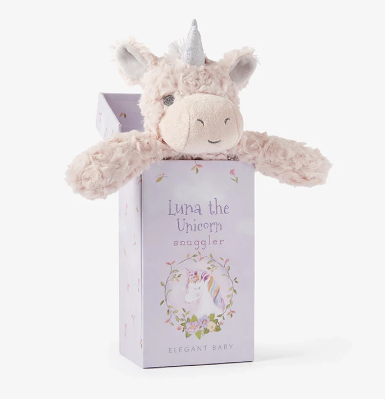 So soft and cuddly, its no wonder our collection of animal baby security blankets are always a go-to when searching for the perfect new baby gift. We’re pleased to introduce a new style of security this season, that we are lovingly calling ‘the snuggler’. Even better, it now comes with its shelf-ready gift box! An evolution of our flats security blankets, these new plush swirl bodies feature a rounder shape easier for snuggling. Pair these baby security blankets with a matching bedtime huggie plush toy or cotton knit baby blanket for the perfect baby gift set that any little one is sure to love.