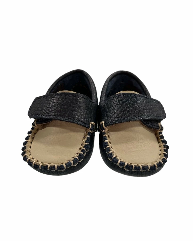 This adorable crib shoe will dress up your baby in style and comfort. Hand Stitched with hook and loop strap to adjust.
