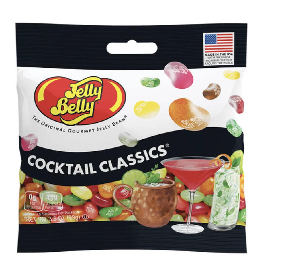 The Jelly Belly Cocktail Classics Grab & Go Bag contains five true-to-life cocktail flavors. Perfectly pair your favorite childhood treat with your favorite adulthood treat! While these beans taste like your favorite cocktails, they do not contain any alcohol. Enjoy your favorite βmocktailsβ in jelly bean form for the best of both worlds.