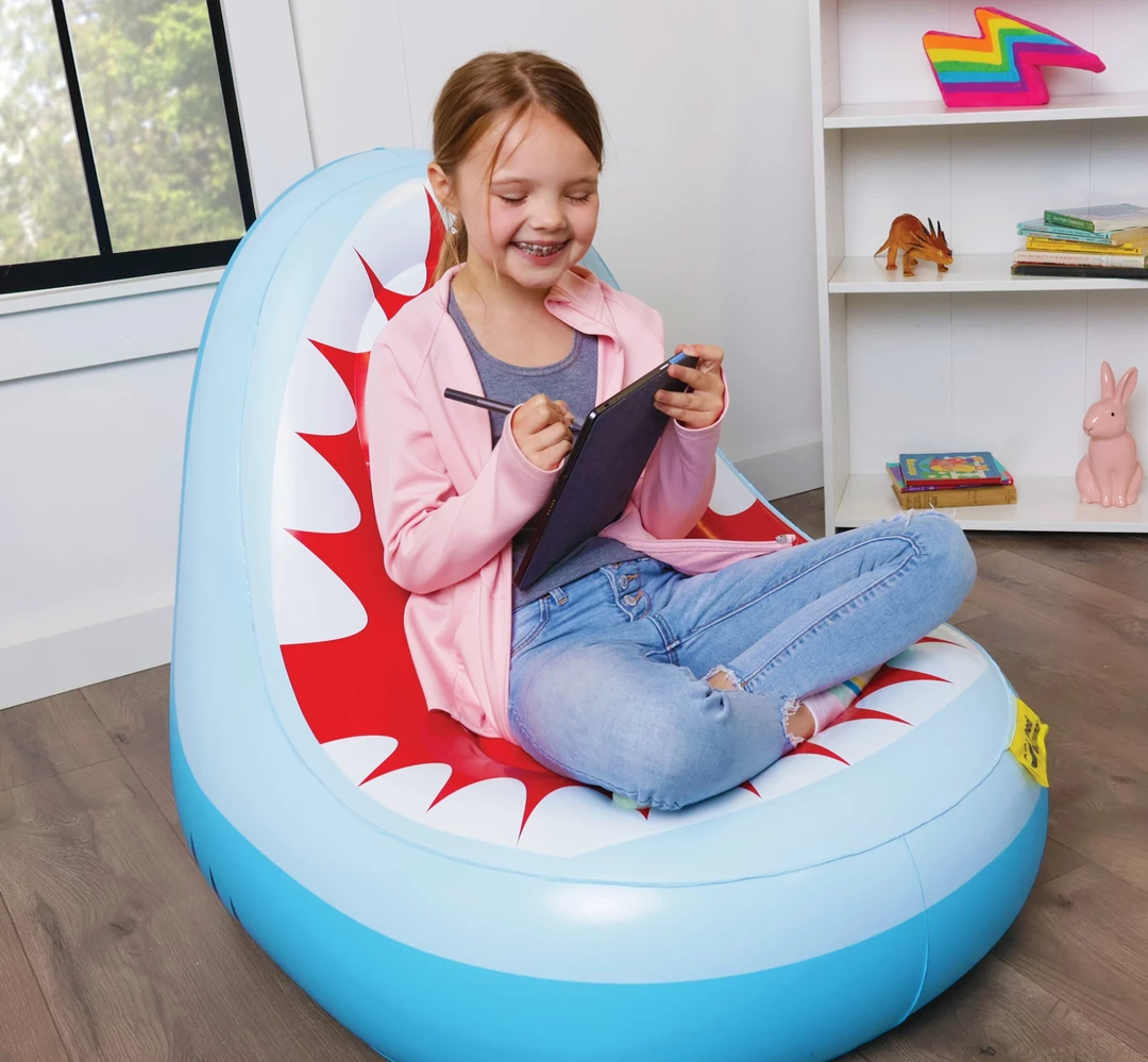 Our Comfy Chairs combine the ease and fun of inflatable furniture with kid-first sizes and designs. At a moment’s notice, you can bring any play space to life with an oversized character that doubles as a comfortable place to chillβwhat kid wouldn’t want to ride a magical unicorn or deep sea shark? Just unbox, inflate, and go!