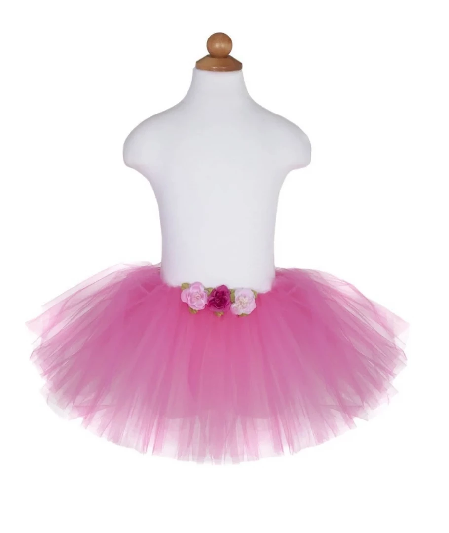 Fluffy tulle makes this adorable tutu one of a kind! Our signature tulle is not scratchy, but super soft. Gathered at the waist into the 1/2″ wide elastic allows for additional sizing flexibility and comfort. Silk roses at the waist add a touch of detail. These tutus are made with care in Canada, and are a favorite essential piece with all little ballerinas and fairies.