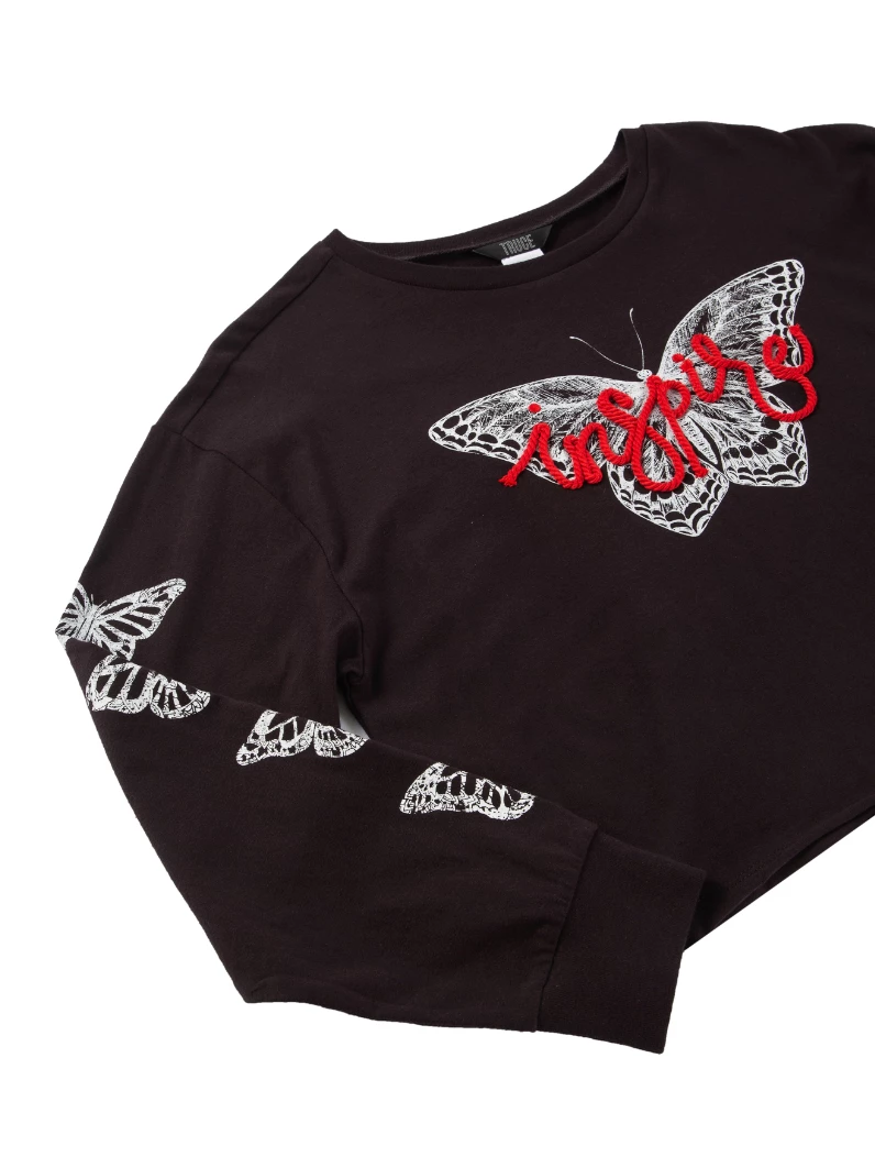 Truce Long Sleeve Butterfly Top with “Inspire.”