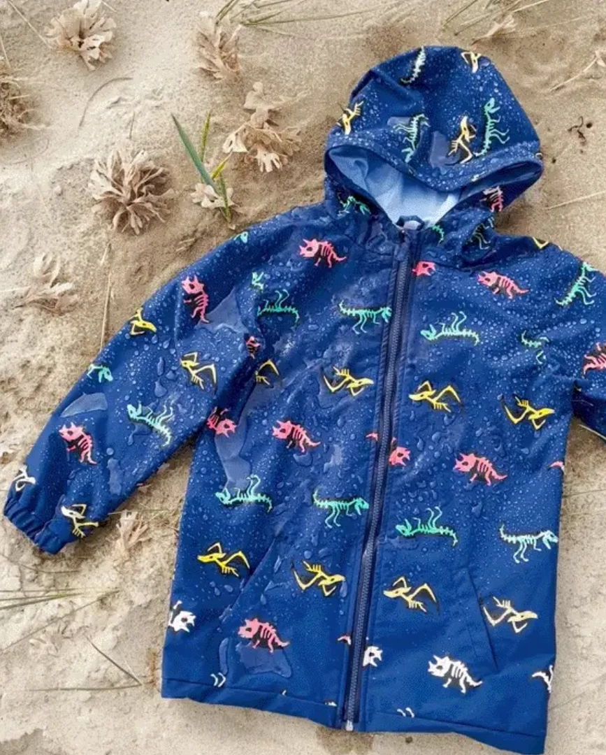 Color changing kids rain jacket. Yes you read that right, this kids rain jacket changes color in the rain!