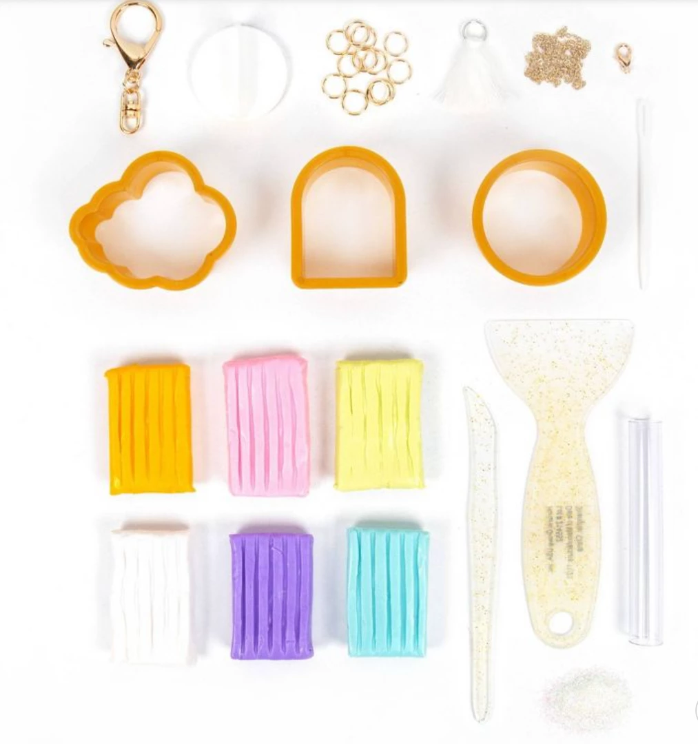 - From oven-bake clays to a mini rolling pin, sculpting tools, and all kinds of accessory-making materials — this DIY set has everything you need to make custom rings, keychains, jewelry dishes, and more!