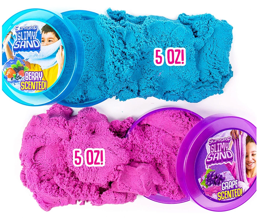 Mold it. Twist it. Expand it! Immerse yourself in the ultimate sensory experience with 10 oz. of pre-made scented SLIMYGLOOP(R)SLIMYSAND(TM)! As soon as you reach in and grab your berry and grape scented SLIMYGLOOP(R)SLIMYSAND(TM) from the reusable containers, you’ll feel the difference — it molds like sand and stretches like SLIMYGLOOP(R)! Pack it into your favorite shape, twist the colors together, or crush your creations and watch them expand! Scented SLIMYGLOOP(R)SLIMYSAND(TM) doesn’t just make for a less-mess sensory experience — it allows for hours and hours of open-ended play! Collect every color and combine with impression plates, clay tools, and more!