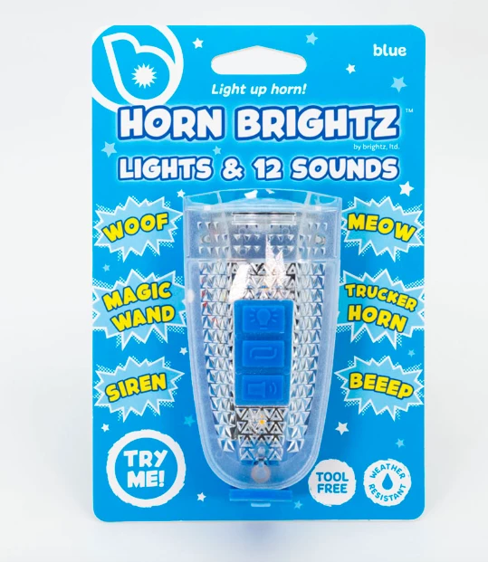 Nothing says βComing through!β like a light-up bike horn packed with 12 fun sounds! Choose from a honk, moo, traditional bell ring, and more, then turn on the lights and ride!
