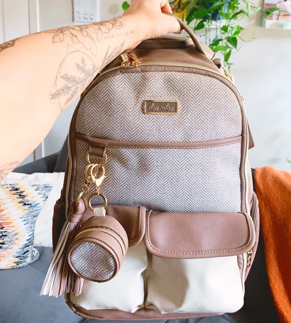 Fashion meets function! This multi-use pod from Itzy Ritzy clips onto your diaper bag to keep essential items easily accessible. This diaper bag charm pod is designed to hold two pacifiers but can also store parent necessities like headphones, change, lip balm or keys.