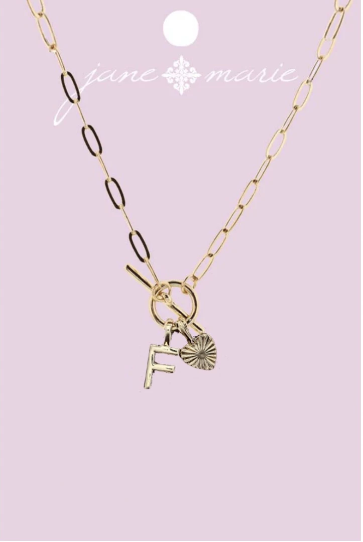 Buy 🎁 Jane Marie Gifts Gold “F” Initial With Textured Heart Necklace 🔔