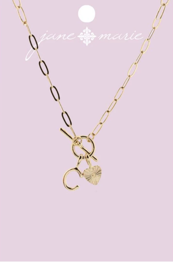 Coupon ๐ Jane Marie Gold “C” Initial With Textured Heart Necklace Gifts ๐