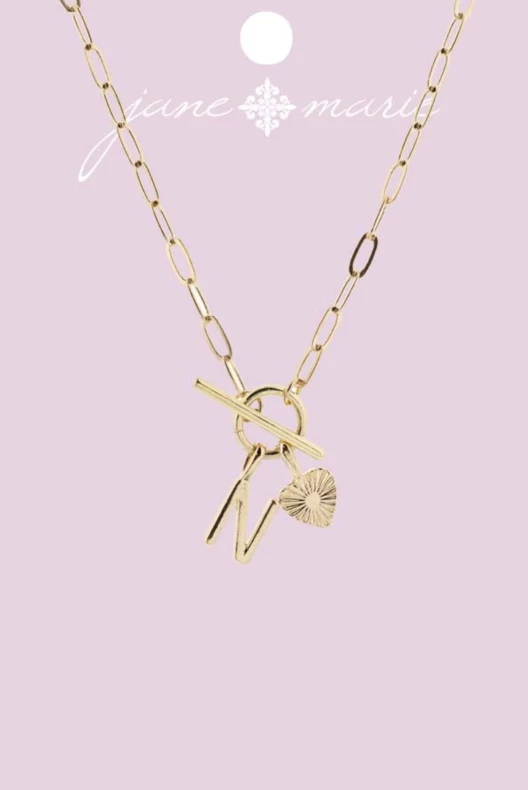 New ⭐ Jane Marie Gold “N” Initial With Textured Heart Necklace 😀