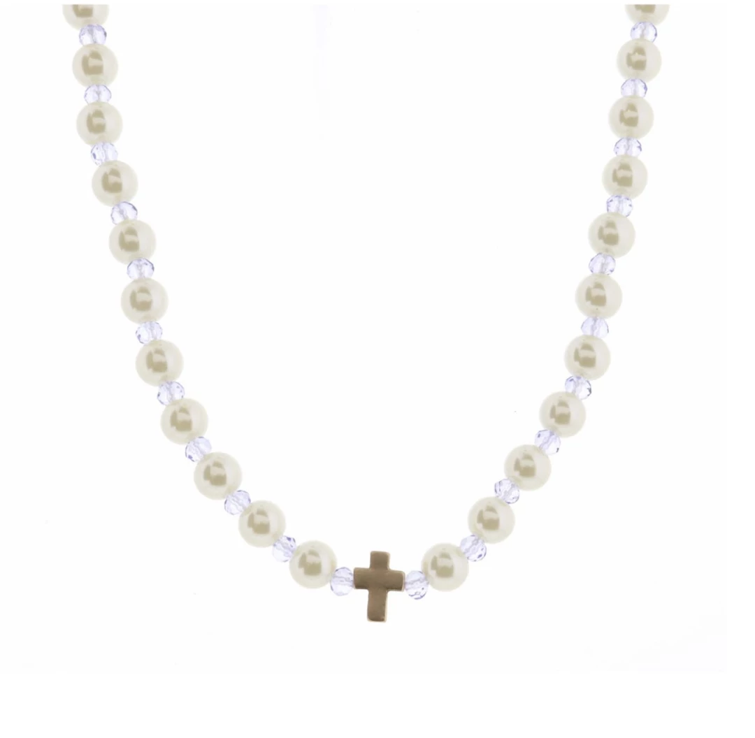 New ๐ Jane Marie Pearl And Lavender Cross Necklace ๐