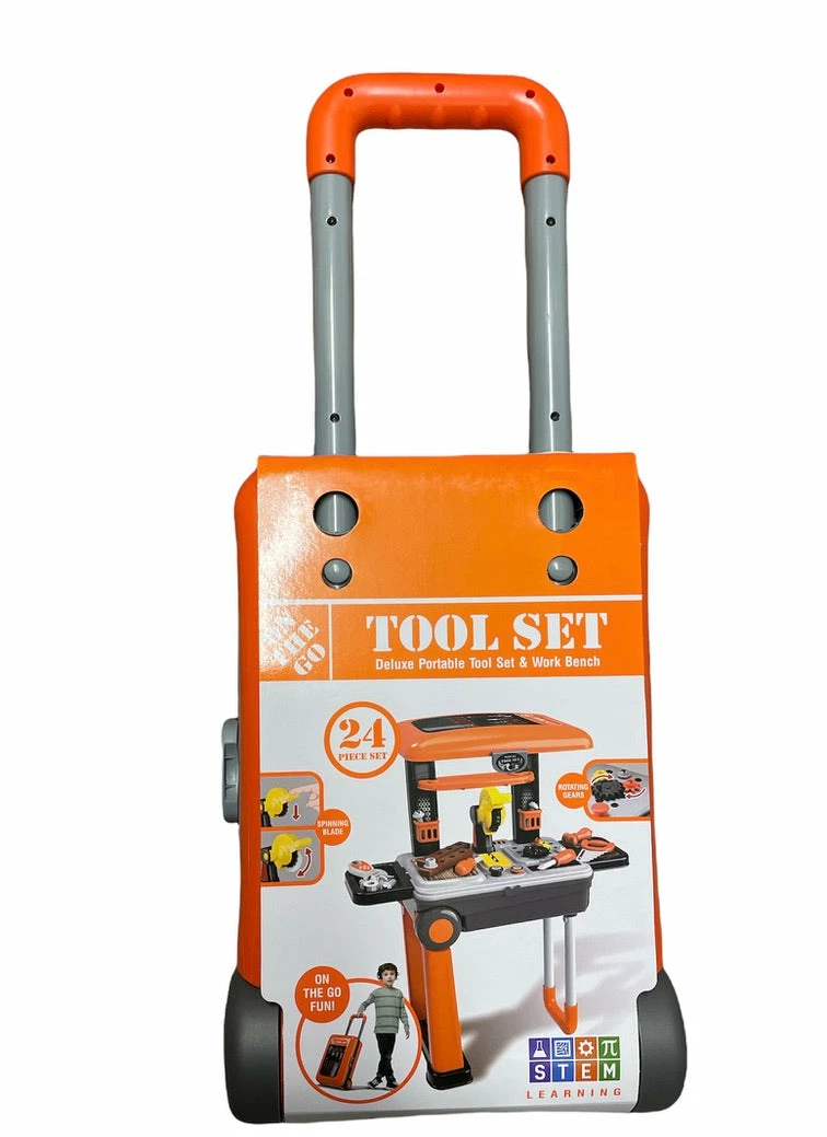 On The Go Tool Set Rolling Suitcase – Deluxe Portable Tool Set & Work Bench, 24 piece set.