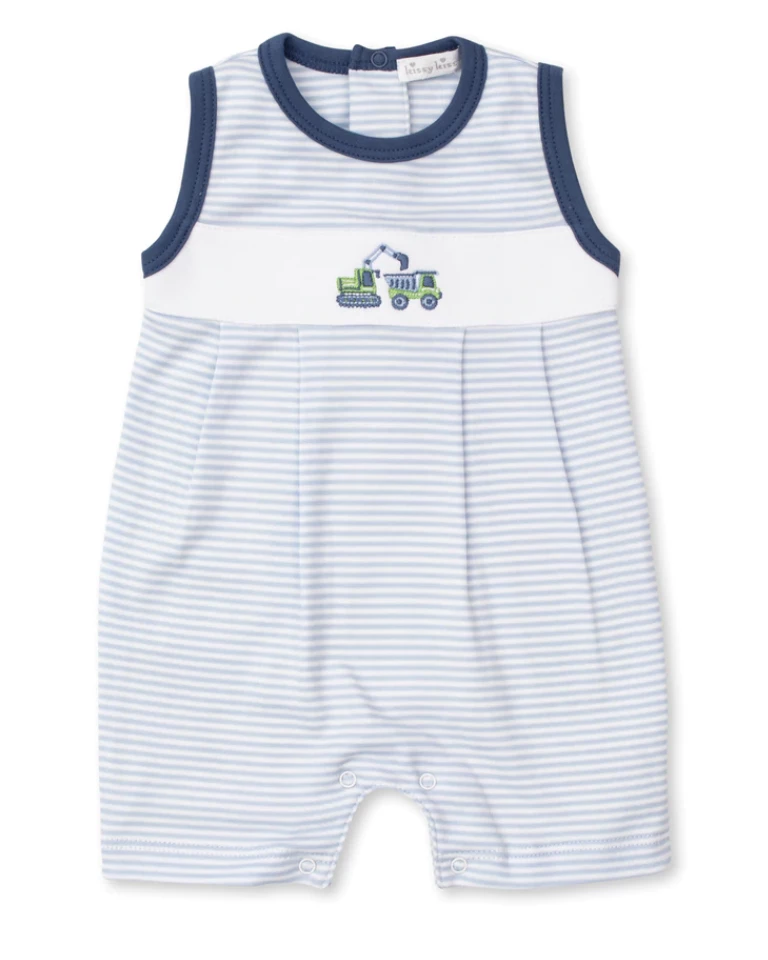 - Our allover earth movers print playsuit keeps baby cute, comfortable, and cozy. Made from the softest Pima cotton for the ultimate in comfort.