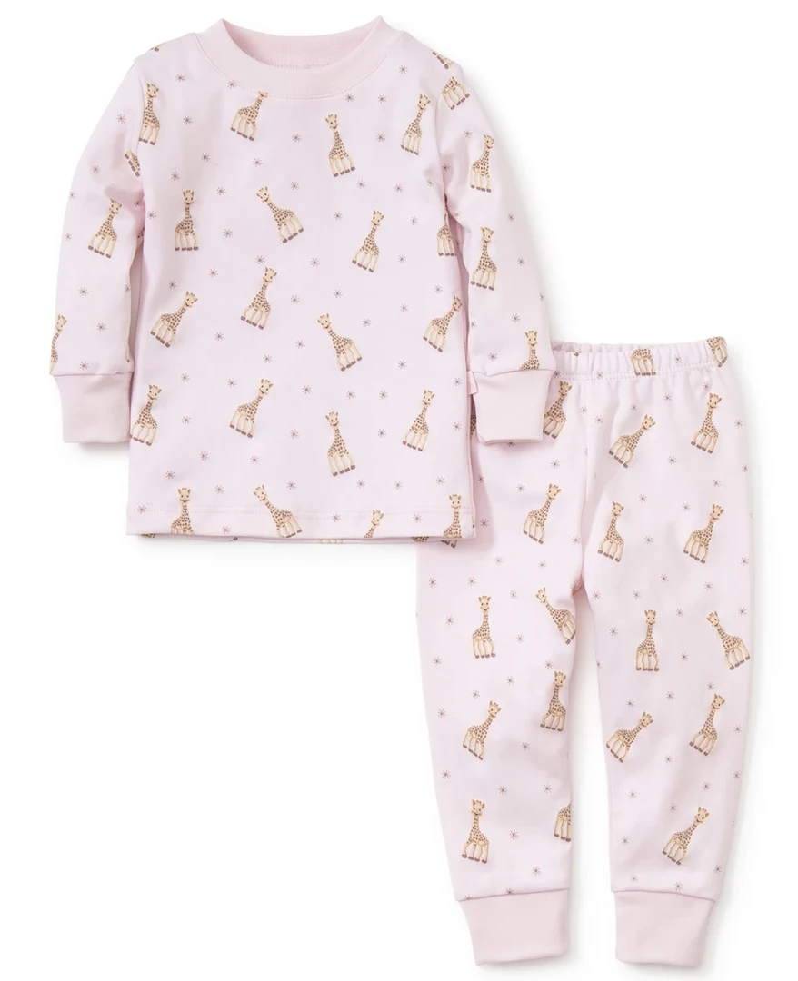 - Snuggle up in comfort with our allover print Sophie la girafe pajamas. Made from luxurious Pima cotton, our two piece set will feel so soft against baby’s delicate skin, spending them straight to dreamland.