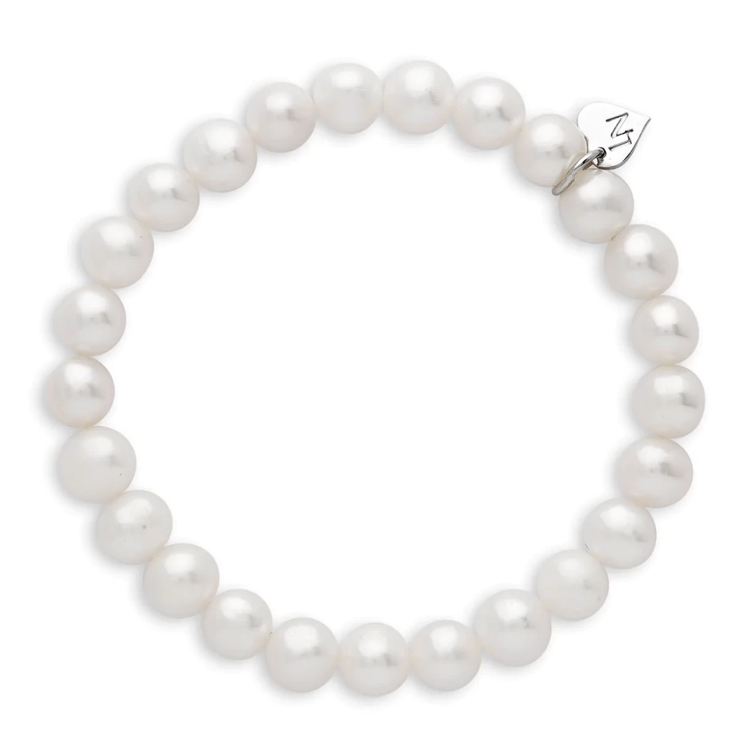 This beautiful pearl strand stretch bracelet features 6-7mm white freshwater pearls. Bracelet stretches up to 6.5″.