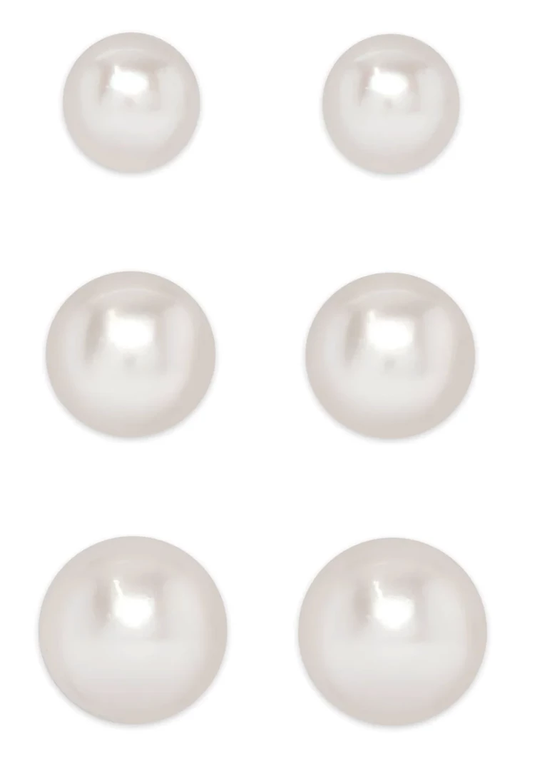 This beautiful 3-pair freshwater pearl studs set is crafted of sterling silver and shines with a high-polish finish. Set features white freshwater pearls in 4, 5, and 6 mm. Earrings secure with friction back clasps.