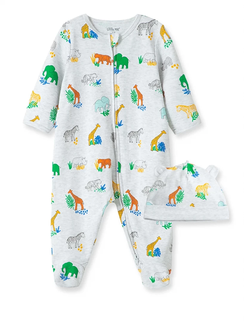 Best deal ๐ Little Me Bright Safari Footed One-Piece & Hat ๐