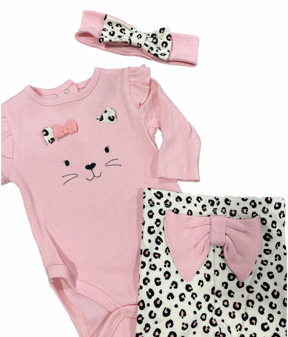 Brand new โ Little Me Infant Clothing Kitty Leopard 2pc W/headband Set ๐