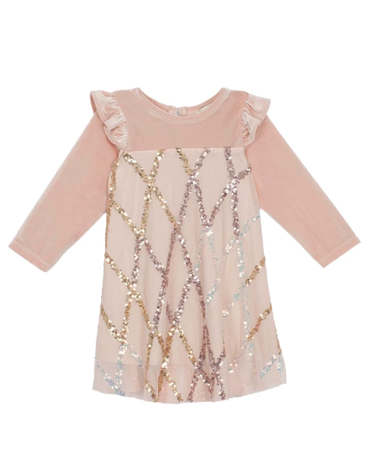 Mabel & Honey Pink Velvet & Mesh Dress.